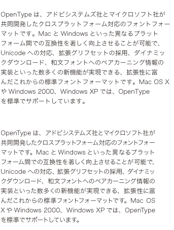 ◆デスクトップパブリッシング(DTP)が注目され始めた頃から、文字組みはページレイアウト上での話だけというのが主流でした。大量の文章を効率よく処理するためのDTPですから、当然の流れということになります。