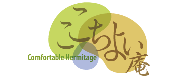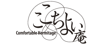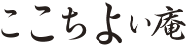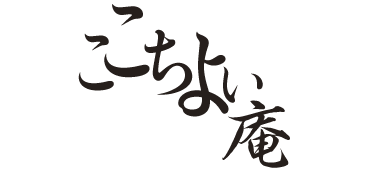 →左端から1文字ずつ文字のフェイトを変更(「こ」=W3)(「こ」=W2)(「ち」=W3)(「よ」=W2)(「い」=W5)(サイズを40ポイントとしてから「庵」=W4)グラフィックパーツを組み合わせて位置調整