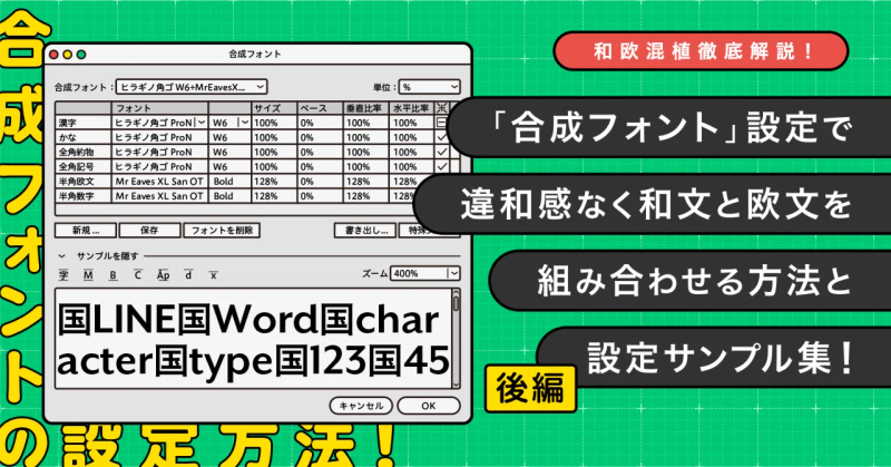 公式note【和欧混植徹底解説!後編】「合成フォント」設定で違和感なく和文と欧文を組み合わせる方法と設定サンプル集
