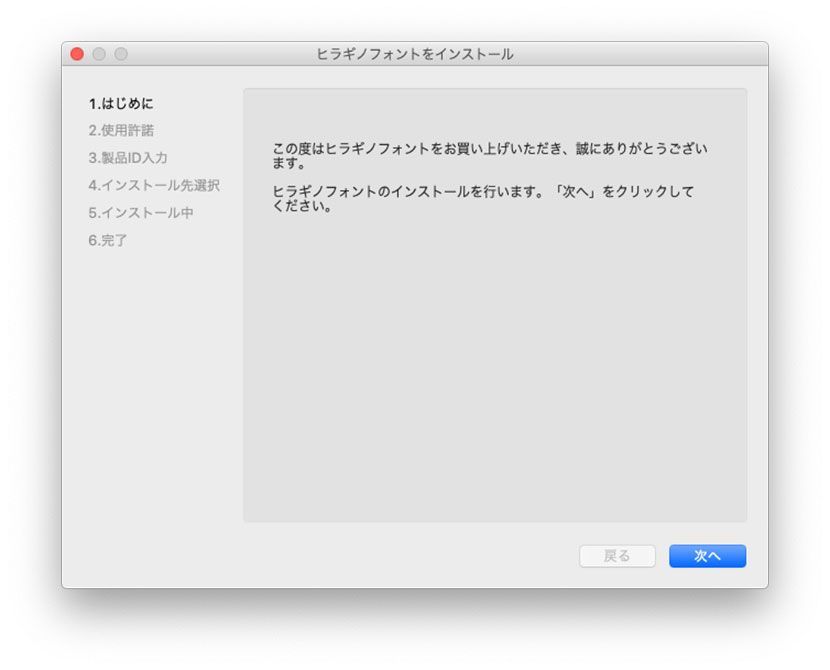 その後は、メッセージに従ってフォントのインストールを行ってください。